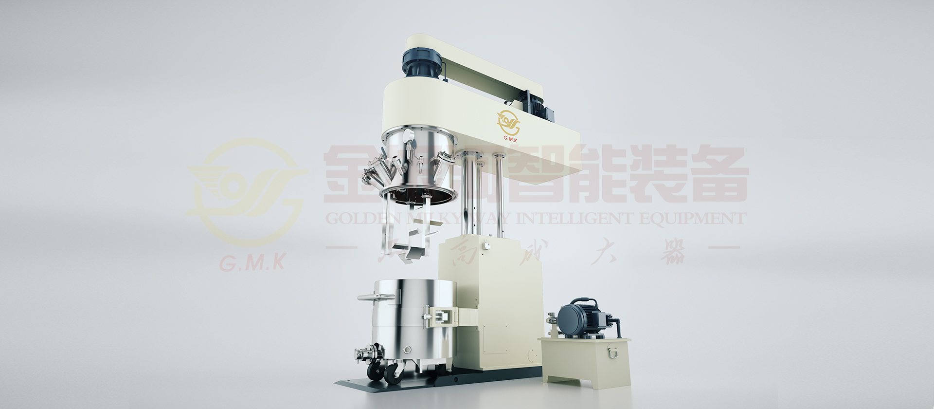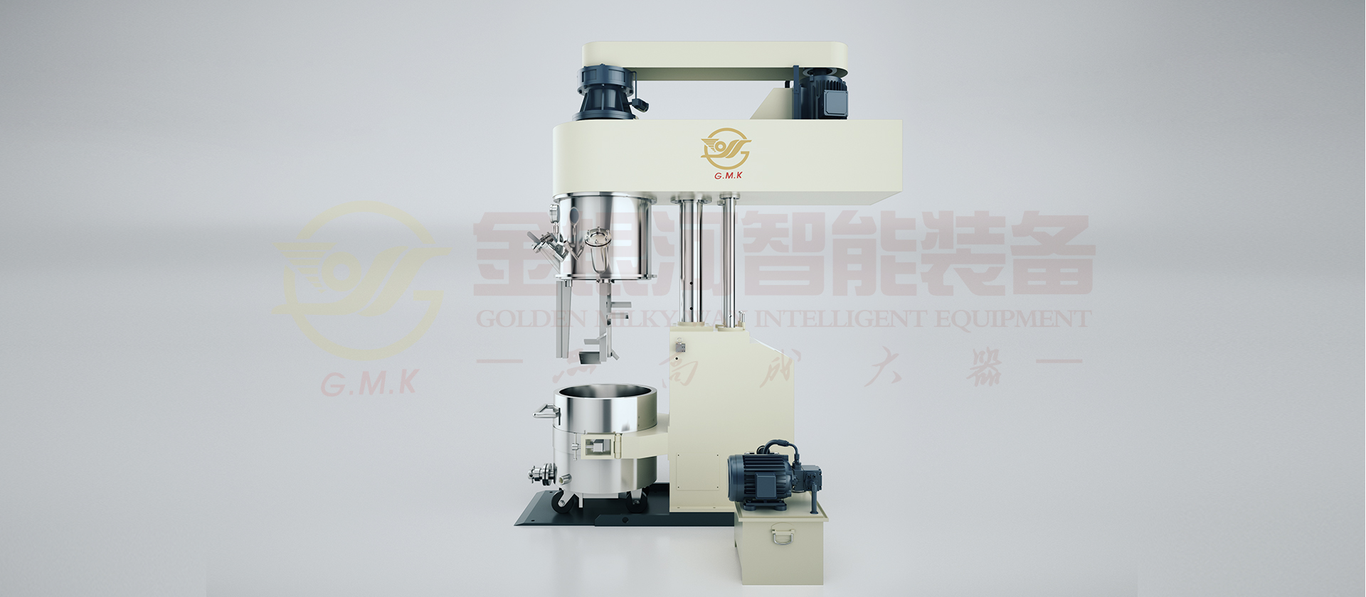 行星攪拌機是一種高效無死點混合攪拌設備,釜內有兩根或三根攪拌槳,攪拌槳在繞釜體軸線公轉的同時,又繞自身軸線高速自轉,其速度可變頻調速,使物料作復雜的運動,受到強力的剪切和混合,釜內設自動刮壁和刮底裝置,將粘附在釜壁上的物料刮下,實現(xiàn)無死點、高效混合。該設備適用于食品、能源、粘膠、電子電器、氟硅、醫(yī)藥、化妝品、日化等行業(yè)生產。