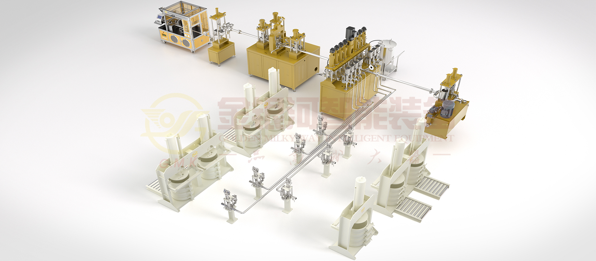 醇型智能調(diào)色線由以下主要部件組成,色漿供料系統(tǒng)、色漿伺服定量系統(tǒng)、基膠伺服定量系統(tǒng)、靜態(tài)混合芯、靜態(tài)混合增壓系統(tǒng)、循環(huán)系統(tǒng)、脫泡系統(tǒng)、液壓系統(tǒng)、集成電控系統(tǒng)、氣控系統(tǒng)、機架等部件組成。該機的特點如下: