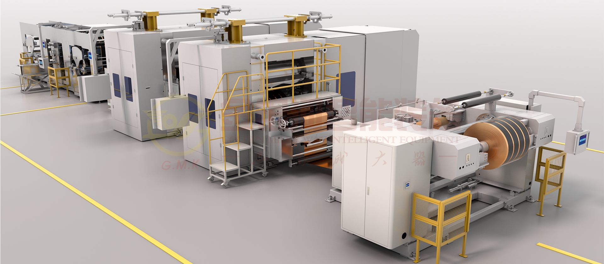 ●輥壓分切一體機(jī),將輥壓功能與分切功能合并,省去了輥壓的收卷裝置,同樣的道理,也省去了分切的放卷裝置,減少操作員工,縮短了傳動鏈,產(chǎn)品質(zhì)量穩(wěn)定,減少損耗,良品率提高。