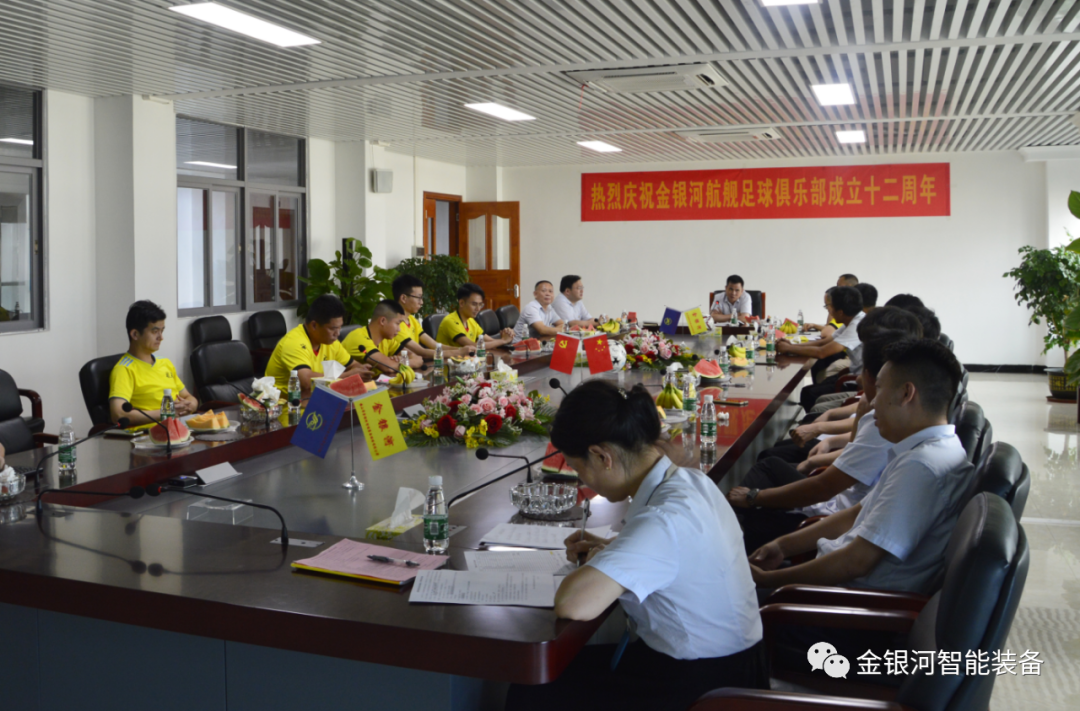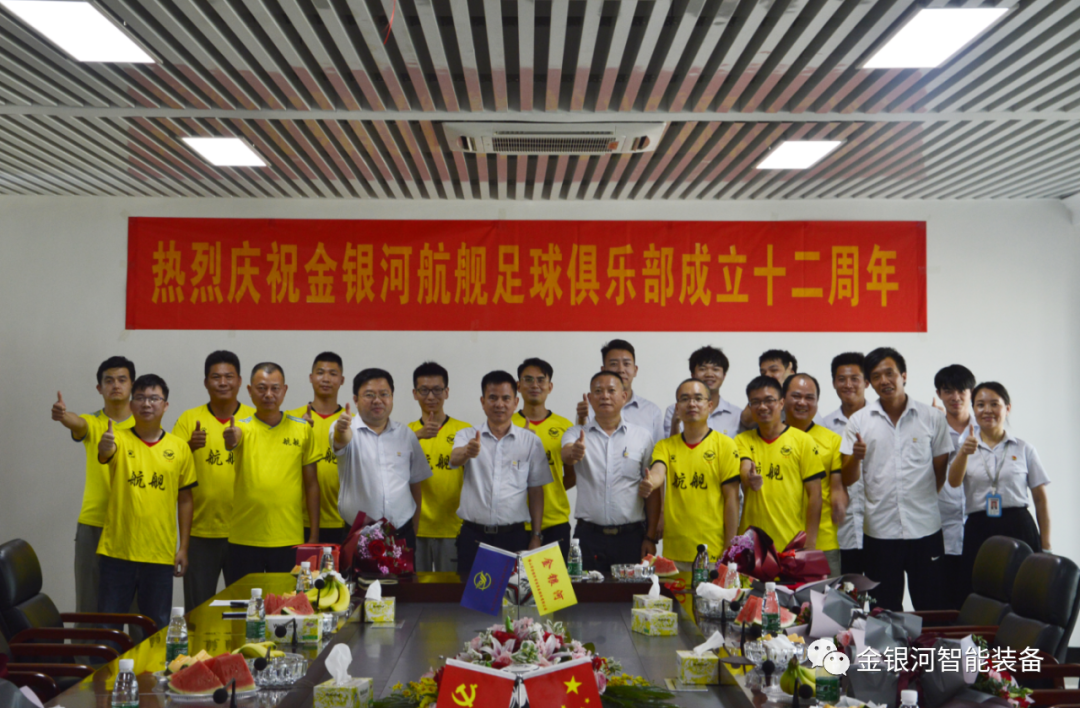 盛夏如火,激情飛揚(yáng)。近日,金銀河航艦足球俱樂(lè)部成立十二周年慶典活動(dòng)在金銀河集團(tuán)B區(qū)大樓舉行。佛山市金銀河智能裝備股份有限公司執(zhí)行總裁黃少清、供應(yīng)鏈總裁熊仁峰、鋰電裝備總經(jīng)理李小云、工程售后總監(jiān)吳曙光、人力資源總監(jiān)兼工會(huì)主席李紅英及其他俱樂(lè)部成員參加了活動(dòng)。據(jù)悉,本次活動(dòng)展現(xiàn)了十二年來(lái)堅(jiān)守初心使命、服務(wù)集團(tuán)發(fā)展的責(zé)任擔(dān)當(dāng)和員工團(tuán)結(jié)一心、攻堅(jiān)克難的精神面貌。活動(dòng)開(kāi)始前,隊(duì)員們共同分享了十二周年的喜悅與精彩。十二年的拼搏、十二年的發(fā)展都濃縮在一張張照片中,熟悉或陌生的面孔,一次次新的突破,讓我們重新回顧了一步步走來(lái)的歷程。