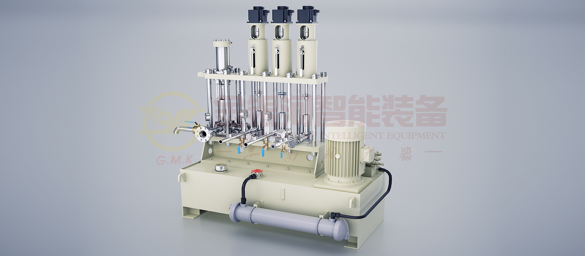 靜態(tài)混合機(jī)是由靜態(tài)混合器、液壓系統(tǒng)、定量計(jì)量系統(tǒng)、閥體、集成電控系統(tǒng)、氣控系統(tǒng)、機(jī)架等部件組成,其中靜態(tài)混合器是整套設(shè)備的核心。